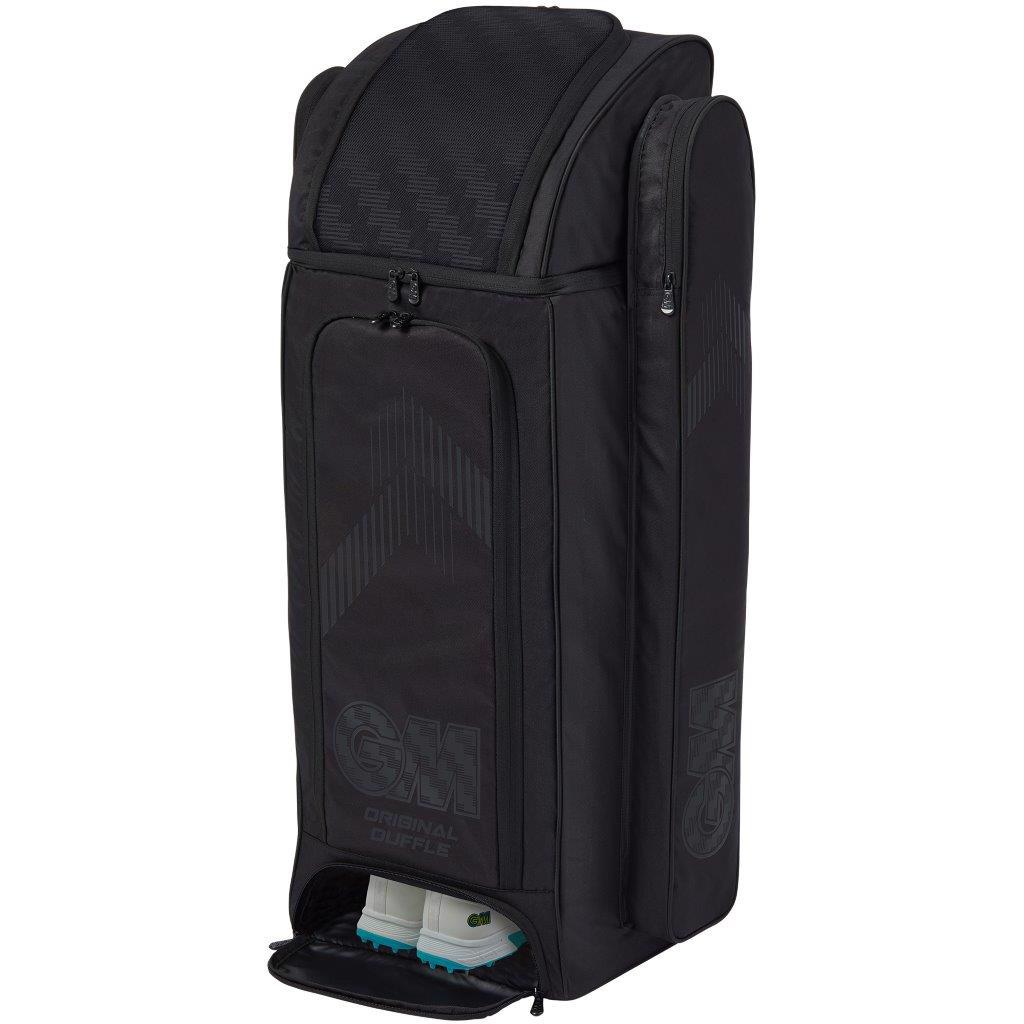 The GM Noir Original cricket duffle bag offers versatile loading access and premium quality.