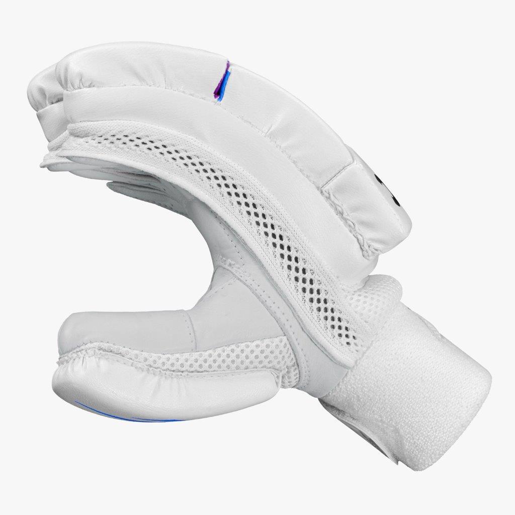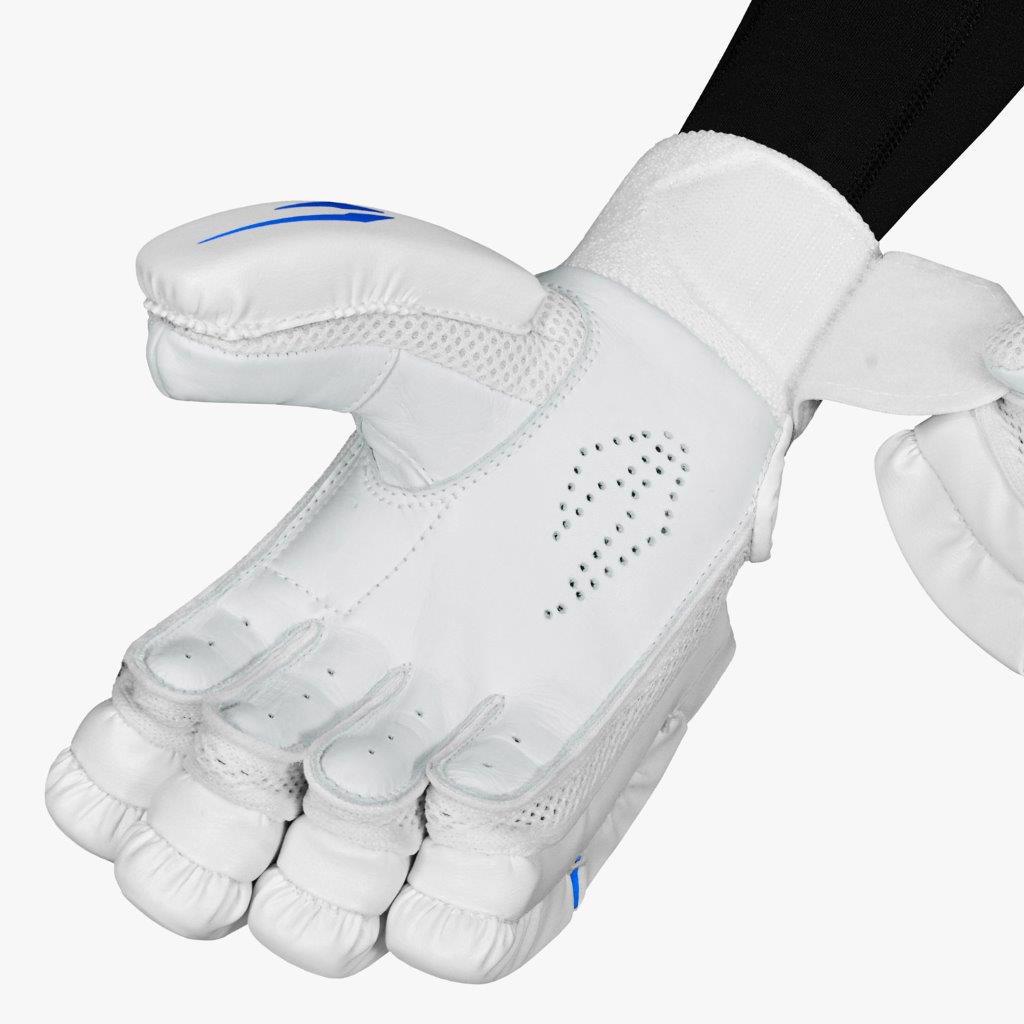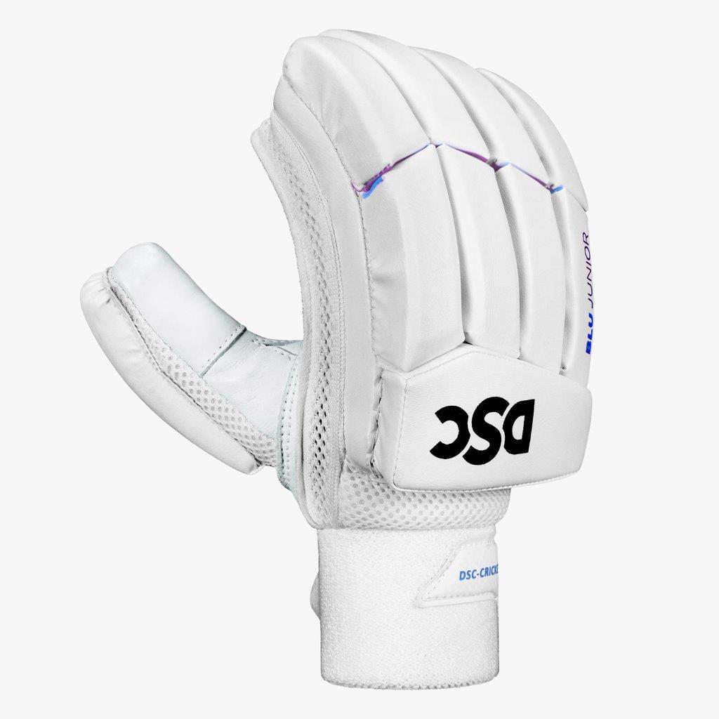 The DSC Blu Junior cricket batting gloves are an entry level glove for x-small juniors, with lightweight, pre-curved construction. Flex-points for better movement.