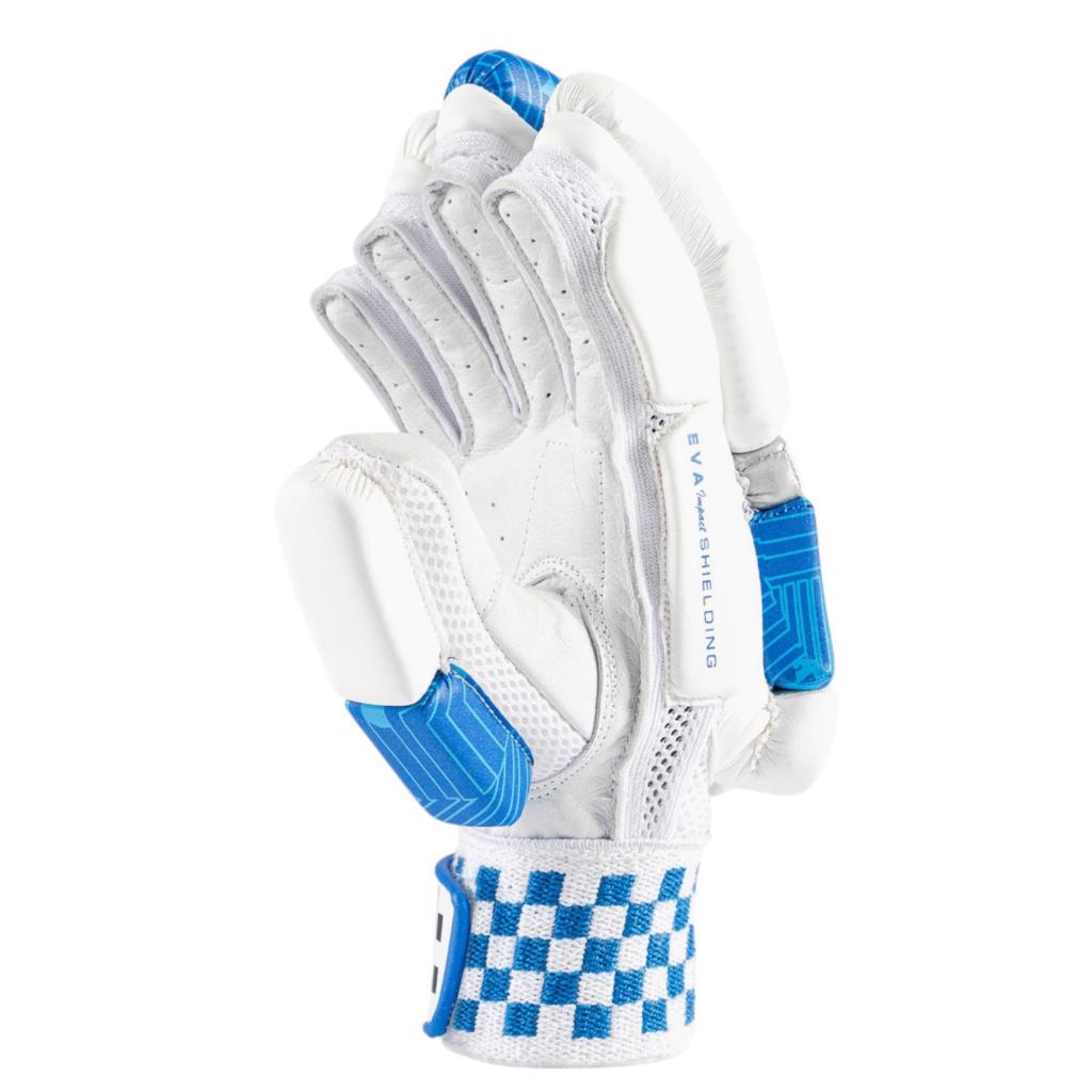 Classic feel of traditional pre-curved finger batting gloves, now engineered with an added layer of protection. Each finger features a durable overlay casing, providing enhanced shielding against impact. Despite this robust protection, the gloves remain lightweight and comfortable. allowing for a secure grip and confident stroke play.