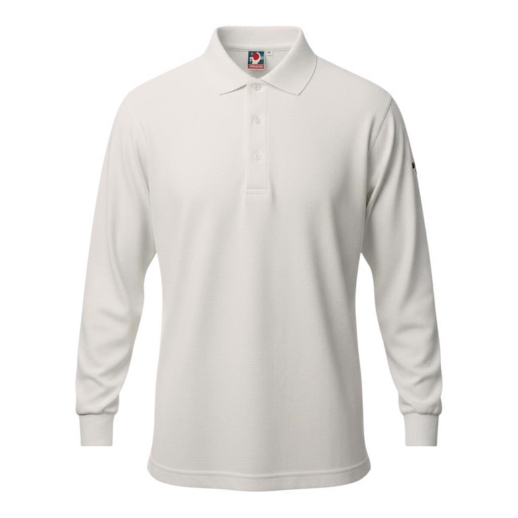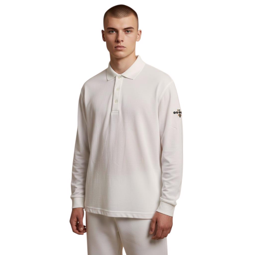 Junior long sleeve cricket polo shirt from Dukes.